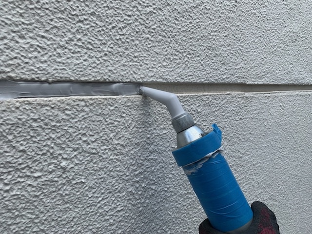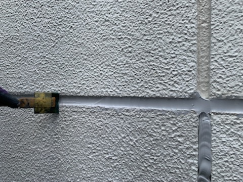 負荷がかかるということは亀裂などが入りやすい場所になりますので今回しっかりとシーリングを充填して雨水の侵入を防いでいきます。