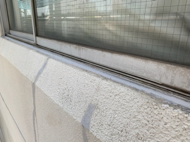 それはサッシやドアなどの建具を取付した際にできる隙間を埋めて雨水の侵入を防ぐためにシーリングを充填しております。