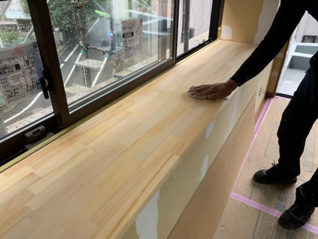 乾燥後に吸い込み防止のサンジングを塗布してから保護するためのクリヤーと量を塗布して完了になります。