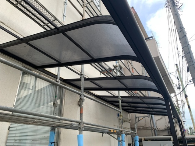 足場の架設にかかってくるルーフは架設前に外して準備完了!!