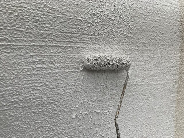 外壁の下地を補修した際には既存の模様(パターン)と同様の模様を付け、補修跡を目立たなくしてから仕上げの塗装に入ります。