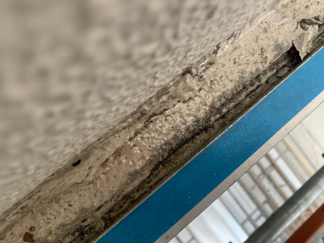 各所から雨漏りが発生しており、クラックや爆裂、破断やシーリングの施工をしながら危険箇所を改修しております。