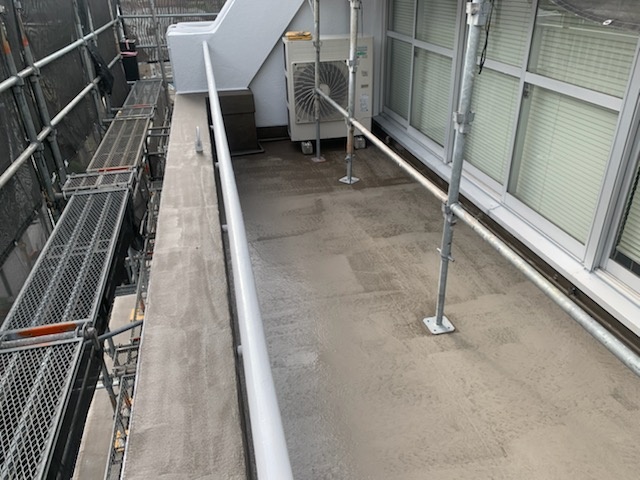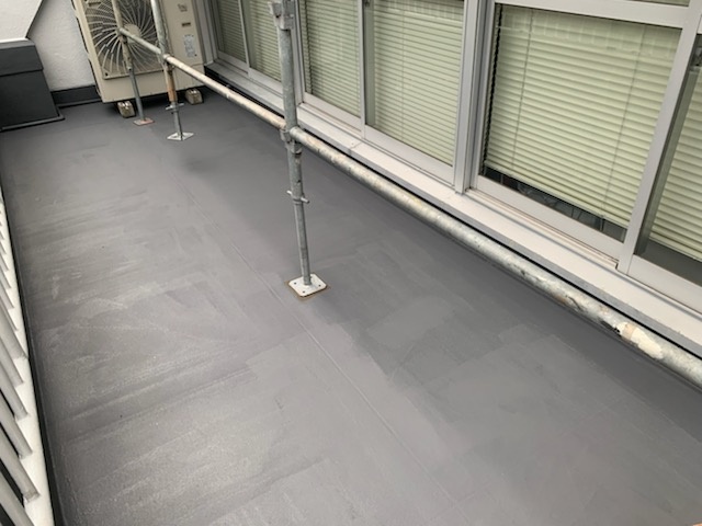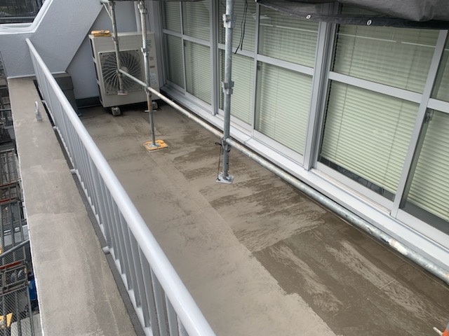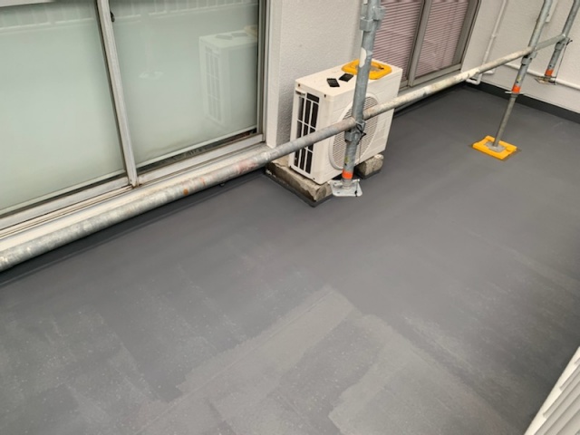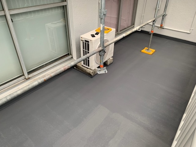 室外機があるベランダは平日はエアコンの排水がたくさん出てきますので防水がしにくい状況になっております。