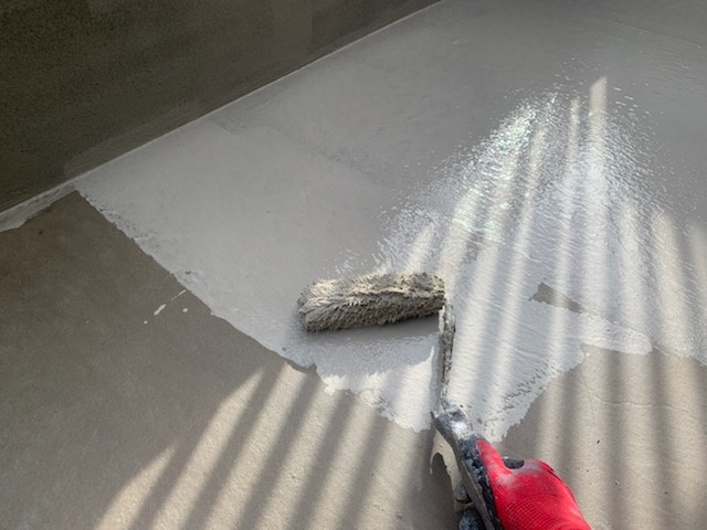 防水材は乾燥の早いポリマーセメント防水材を使用して工程を進めていきます。