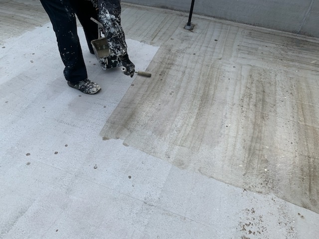 ①清掃~プライマー~ウレタン主剤1回目