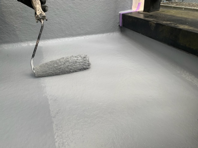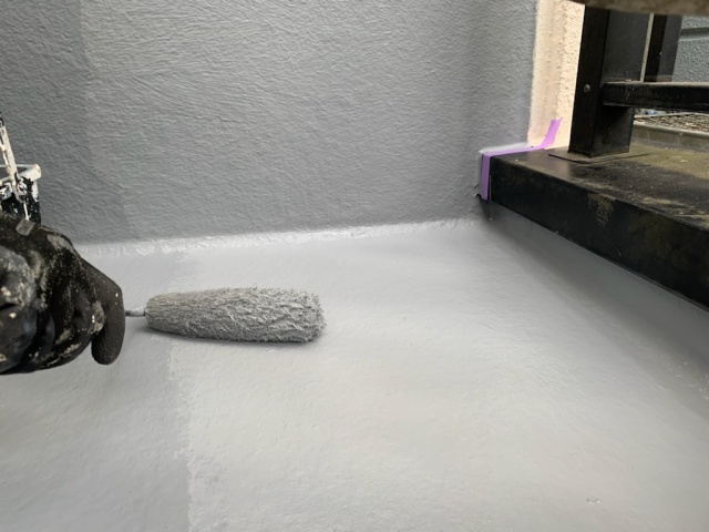 皆さんのベランダでよく使用されておりますFRP防水は硬化が早く、上手くいくと1日で施工が完了します。
