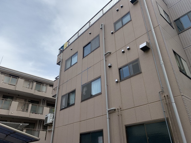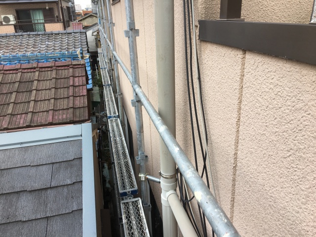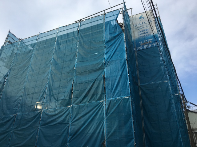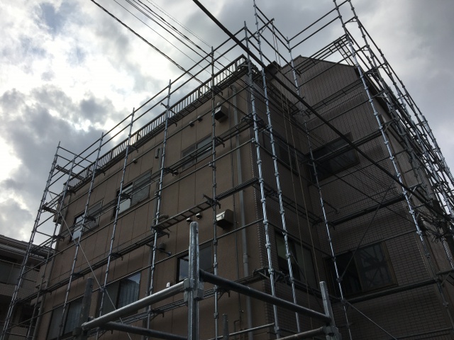 無事に足場の架設が完了しましたので、これから高圧洗浄をした後に今回の工事の1番の目的であるシーリング工事を進めていきます。