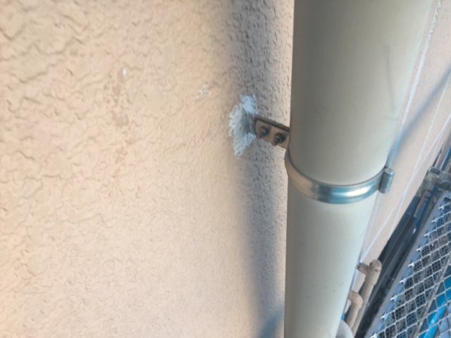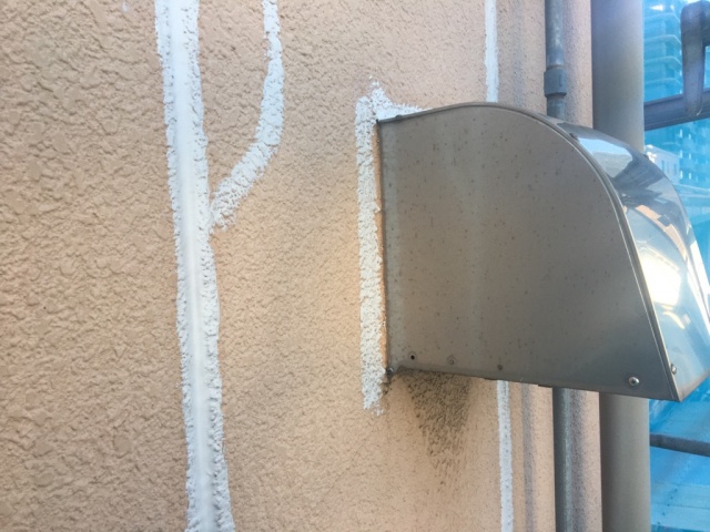 あと換気フードや雨水管の支持金物の付け根などの雨水が侵入する可能性がある部分はしっかりとシ―リングを充填しておきます。