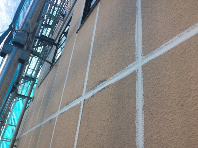 ALC板間からの雨漏りを外壁改修工事で直していきます。江東区大島の外壁塗装工事
