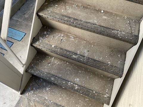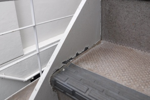 鉄骨階段の塗装がパラパラと剥がれる原因は塗膜の薄さと雨水のせいかも/世田谷区上北沢の鉄骨階段塗装工事