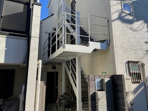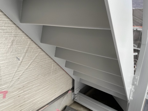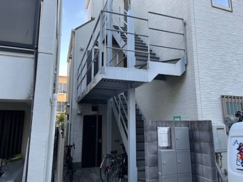 本日より世田谷区上北沢で鉄骨階段の塗装工事が始まります。