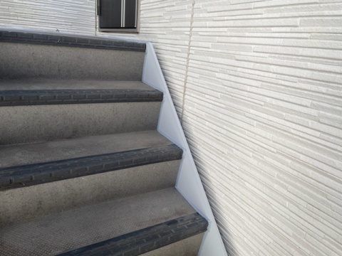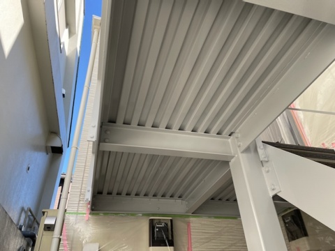 本日は午前中に世田谷区上高井戸の鉄骨階段の長尺シート廻りのシーリングを施工してからこちらの現場にお伺いしております。