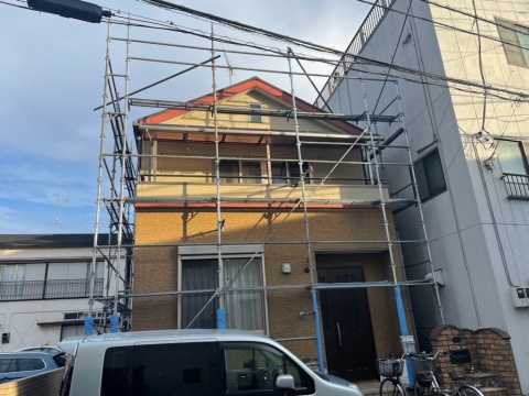 足立区梅田で外壁塗装工事が始まります。