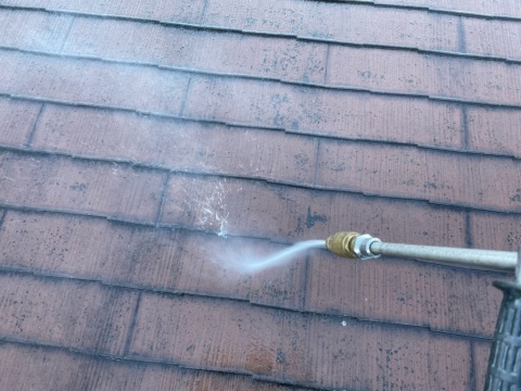 屋根の塗装の際にはまず高圧洗浄清掃で付着した汚れを洗い流していきます。