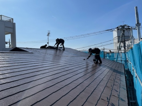 屋根の塗装工事に足場は必要か?暑い夏に向けて遮熱塗料で屋根の塗装/足立区本木の屋根の遮熱塗装工事