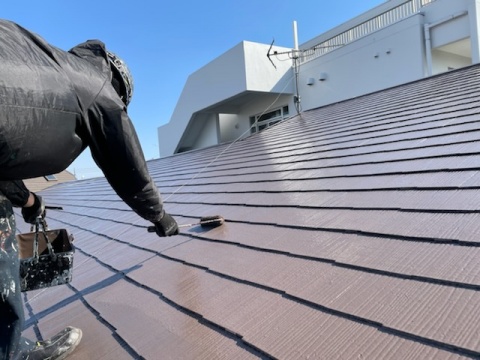 屋根の塗装工事の際には屋根の上に乗り塗装をしていきます。