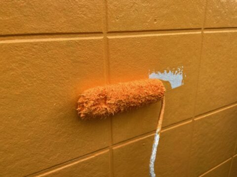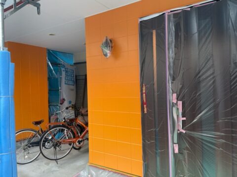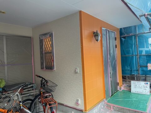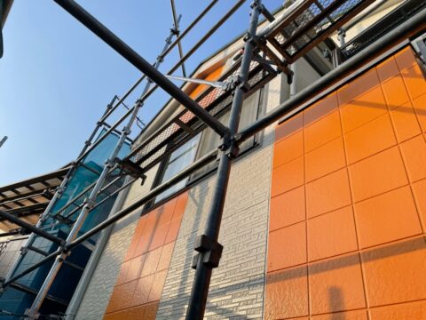 カラフルな外壁塗装色で外壁をイメージチェンジ!!外壁塗装色オレンジで塗装中!!