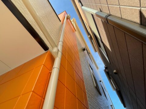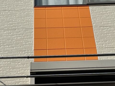 ベージュベースの外壁にフレッシュなオレンジをアクセントにした外壁になります。