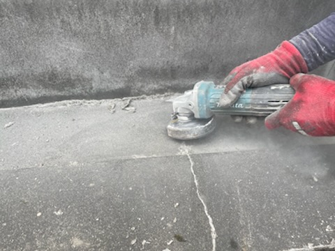 また、このエフロは石灰化して固くなっておりますので、これから施工する防水工事の密着を妨げてしまいまったり、突起が出てしまったりすので、防水前に平滑に処理をしておきます。