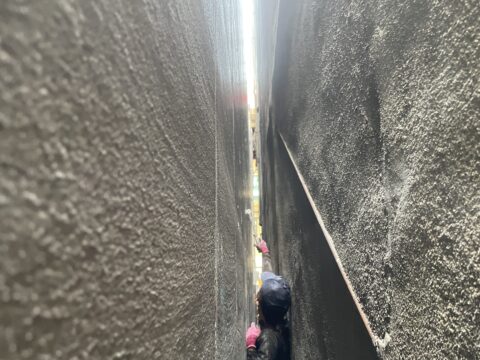 ヘルメットを被っていると通り抜けできないほどの狭さになっております。