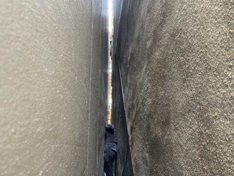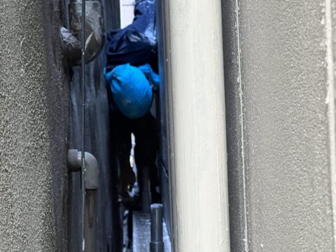 大阪市天神橋の隣地とのスペースが狭い外壁塗装の現場ですが、昨日無事に作業が完了しました。