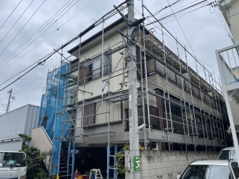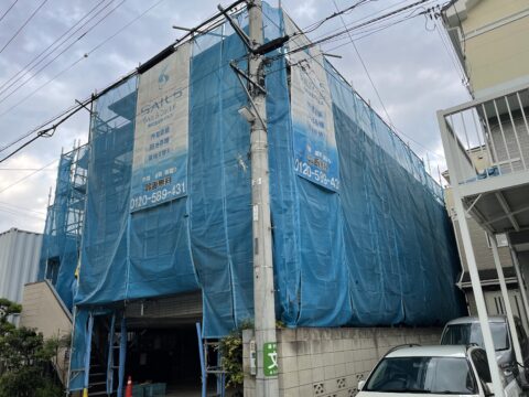 先週までセイルズの職人全員で大阪からのご依頼の隣地との敷地が狭い外壁塗装工事の出張をしておりましたが、今週からは地元足立区鹿浜での外壁塗装工事がはじまります。