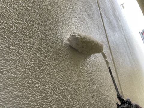 しっかりと乾燥させたら2回目の単層弾性塗料を塗布していきます。