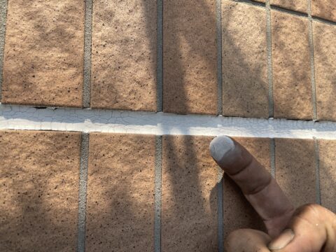 シーリングが劣化して弾力が無く表面がチョーキングしており粉っぽくなってしまってしまっております。