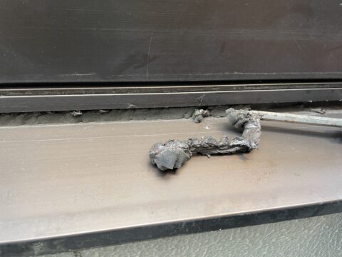 サッシの水切りのシーリングはきちんと硬化がしておりません。