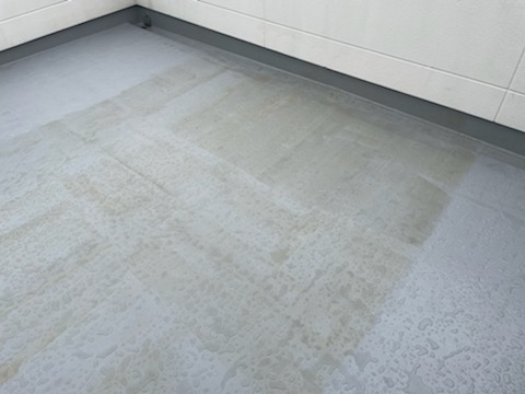 この事例は弊社としても全く発生した原因がわからず、メーカーに問い合わせをし解決した事例ですが、施工後にお客様より防水表面のベタつきをご指摘いただきました。