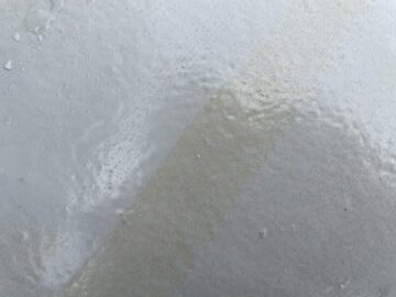 これは冬場の時期の塗装でしたが、夕方施工をして、すぐに気温が低くなってしまったため、硬化がなかなか始まらず翌日になっても乾いていない状態でした。もう少し硬化剤の量を増やすことで反応を促進ことで対応できたと思います。