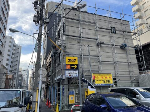 オフィスビルが多く通行量も多い場所ですので、特に足場の架設に伴う安全対策はきちんと行わなければなりません。