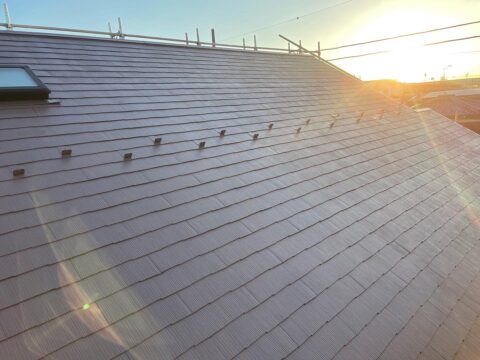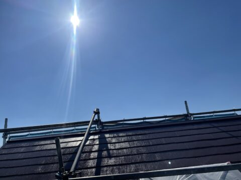 日が上がり、屋根がしっかりと乾燥した午後から屋根塗装を始めました。