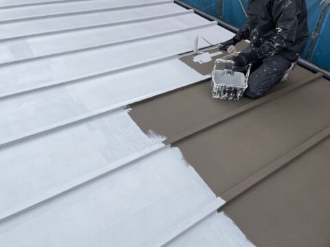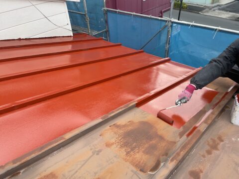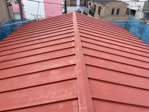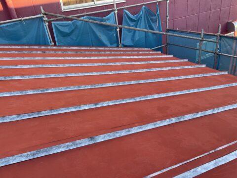 金属屋根の防水工事はポリマーセメント系防水材『ビッグサンコートMR工法』で!!@東京都足立区南花畑の防水工事