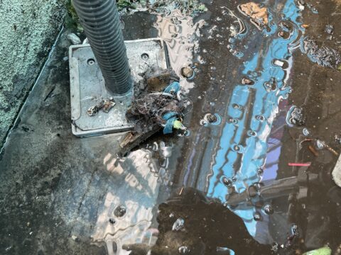 排水口に直接高圧洗浄をしても水が戻ってきてしまいます。