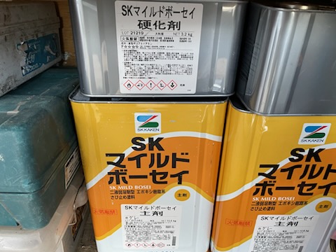 錆止め塗料は2液エポキシ樹脂錆止めを使用しております。