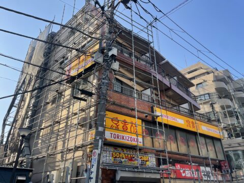 駅そばの人通りの多い建物ですので、安全にはしっかりと注意をして工事を進めていきます。