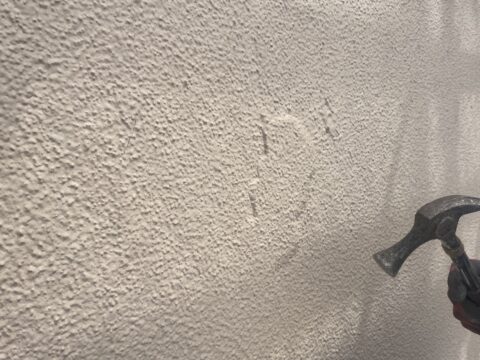 目視で確認できるものもあれば、表面には見えていないが下地が浮いてしまっている所もありますので、打診と目視で下地を確認していきます。