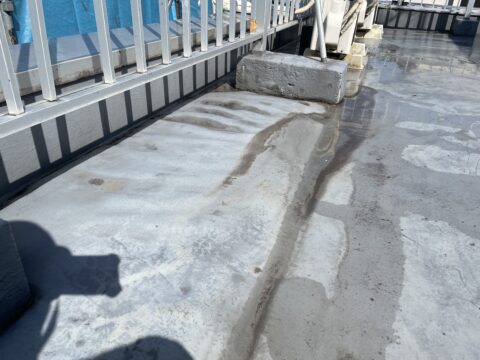 前回爆裂や錆の処理をきちんとさせて頂きましたので、今回の工事ではその外壁、防水をし直す事で、建物の保護をしっかりと行う事が目的です。