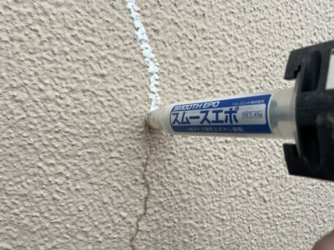 破断の補修は硬化後に硬質になるエポキシ樹脂を注入していきます。