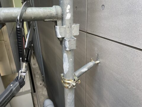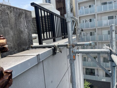 1番最後に屋上の笠木で足場を固定して完了になります。