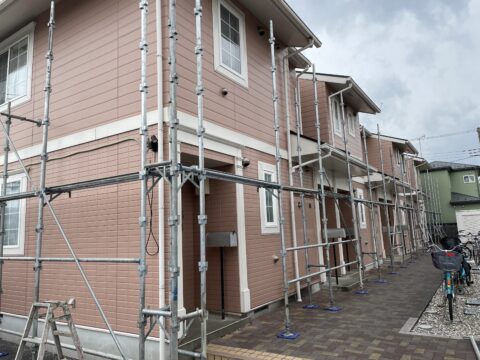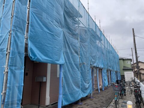 埼玉県草加市で集合住宅の外壁塗装がはじまりました。