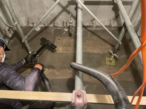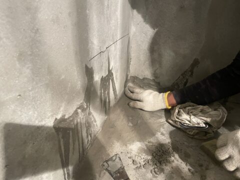 水が出ている箇所を止水材を塗布して防水が行える状態にします。