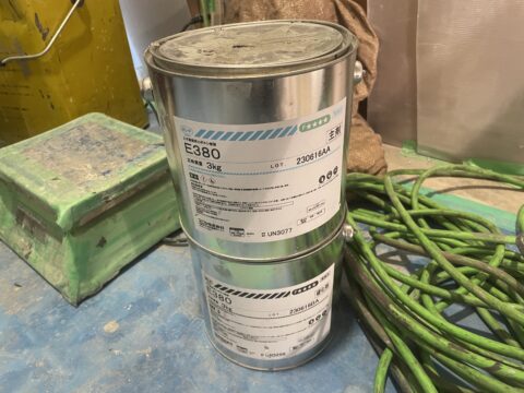湿気があっても、水の中でも固まる専用パテを使用して止水箇所を補強します。