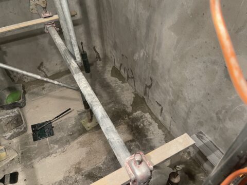 2つめは外から侵入してきた雨水がエレベーターピット内に溜まってしまうのを防ぐ為に防水をしたいというご依頼です。