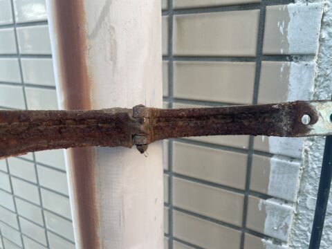 もう塗装では錆を抑えられない?雨水管の支持バンドの錆の発生