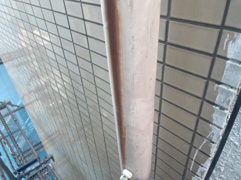 この上から錆止めと塗装をしても中がもっと腐食している今回のような場合では、塗装をしても雨水が錆汁になりせっかく塗装をして綺麗になった配管を汚してしまう可能性が高いです。