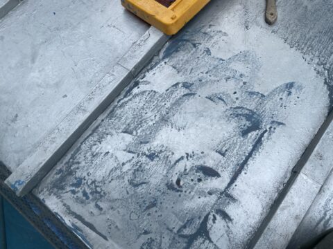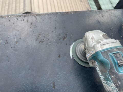 表面の目荒らし+腐食箇所はサンダーで錆を落としていきます。