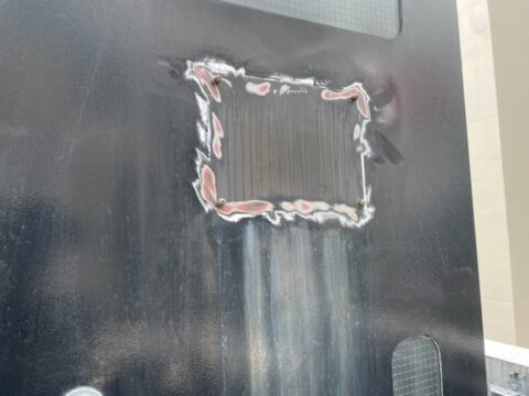 ステッカーやプレートなど外して塗装できるものは撤去して塗装を進めていきます。