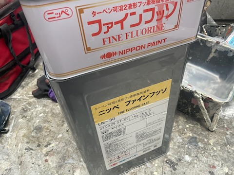 今回使用している塗料は2液硬化型ふっ素樹脂塗料です。